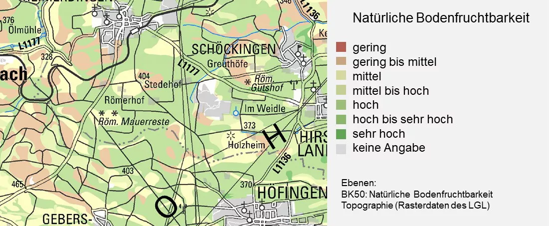 Für die Bewertung der Bodenfunktionen stehen in Baden-Württemberg die Bodenkarte 1 : 50 000 (BK50) sowie die Bodenschätzung als digitale Datenquellen zur Verfügung.