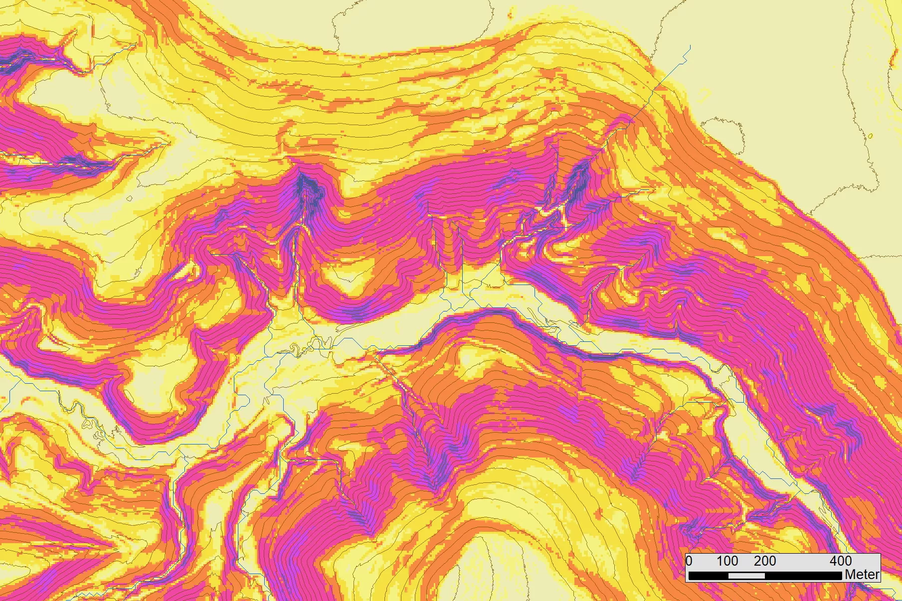 In der Bodenkarte 1 : 50 000 (BK50) umfassen die Kartiereinheiten Vergesellschaftungen von Böden, die sich ähneln oder ein regelmäßiges, häufig reliefgebundenes Verteilungsmuster aufweisen. Die Vektordaten der BK50 lassen eine räumliche Gliederung der dargestellten Flächen nicht zu. Hier setzen erste Modellierungsversuche mit dem Ziel an, die Vektordaten auf Basis von Relief- und Gesteinsparametern in Rasterdaten zu überführen. Fließende Übergänge zwischen Kartiereinheiten, sei es durch geringe Änderung bodenkundlicher Merkmale oder des Verteilungsmusters der Böden, können mit höherer Auflösung abgebildet werden und in thematische Karten einfließen.
