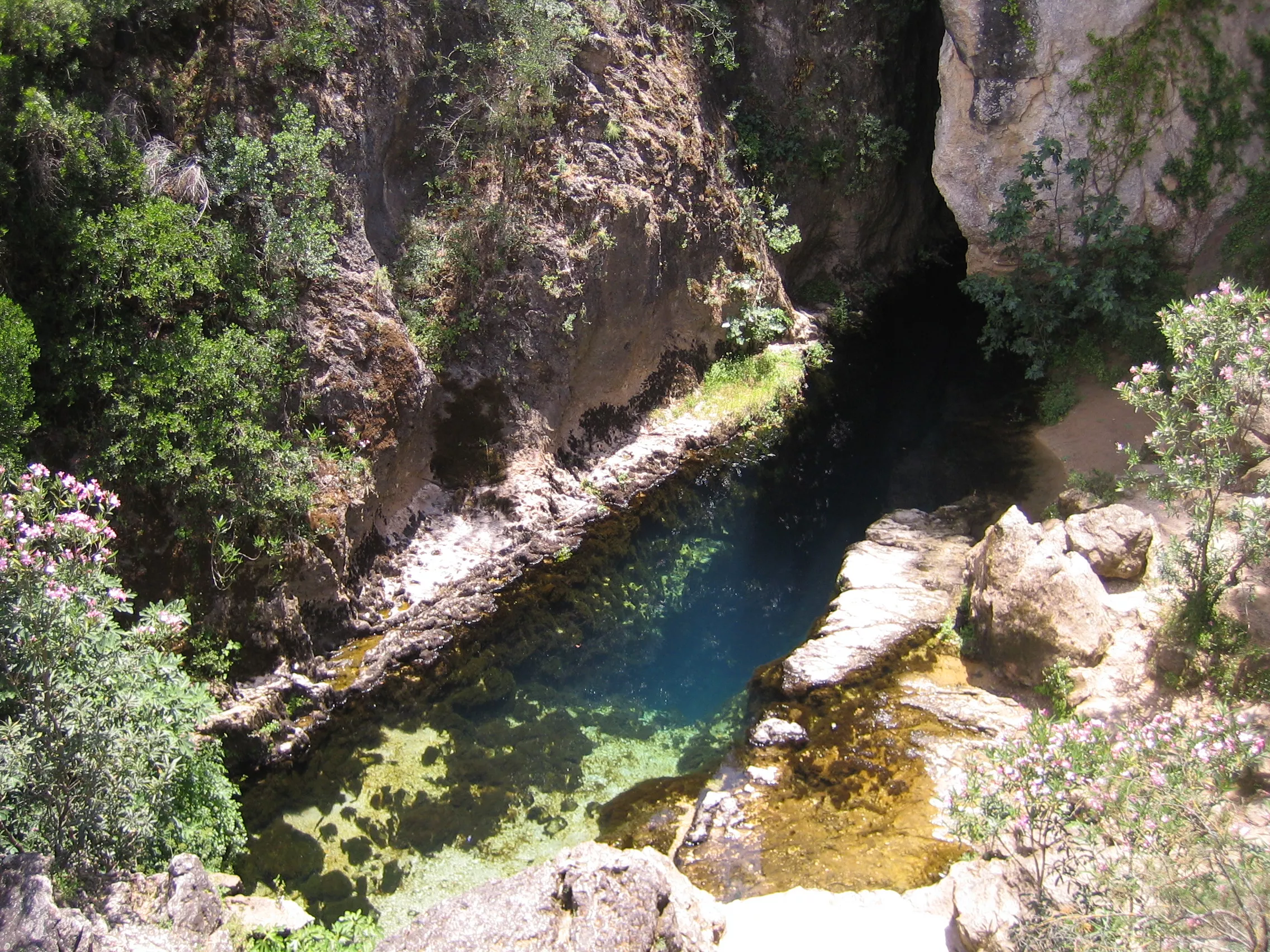 Grundwasser ist Teil des Wasserkreislaufs, d. h. es wird ständig durch versickernden Niederschlag neu gebildet, fließt seinerseits aber wieder über Quellen oder diffuse Austritte in Oberflächengewässer ab (siehe Graphik). Auf seinem Weg vom Ort der Grundwasserneubildung zum Austritt an der Oberfläche kann das Grundwasser unterschiedliche Arten von Fließsystemen durchströmen, wie z. B. den Porenraum eines Lockergesteins, Klüfte und Fugen in einem Festgestein (Fotos) oder Hohlräume im durch Lösung aufgeweiteten Gebirge (Karst).