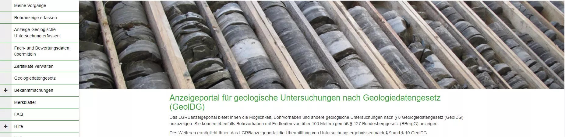 Das LGRBanzeigeportal bietet die Möglichkeit, Bohrvorhaben und andere geologische Untersuchungen nach § 8 Geologiedatengesetz (GeolDG) anzuzeigen. Bohrvorhaben mit Endteufen von über 100 Metern können zudem gemäß § 127 Bundesberggesetz (BBergG) angezeigt werden. Des Weiteren ermöglicht das LGRBanzeigeportal die Übermittlung von Untersuchungsergebnissen nach § 9 und § 10 GeolDG.